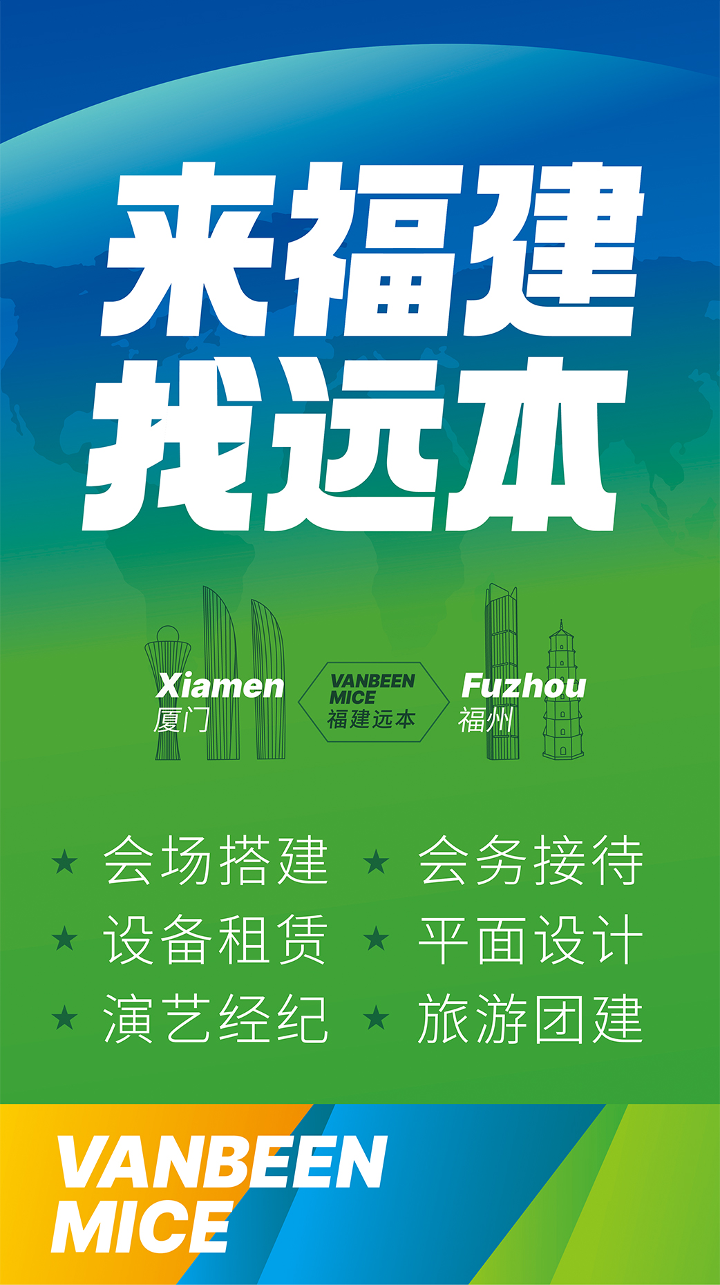 廈門遠本成立于2013年,是一家集策劃設(shè)計、落地搭建以及會議接待等全案服務(wù)的DMC公司。公司擁有LED屏幕、燈光音響、木作工廠等專業(yè)舞美設(shè)備,擁有一批專業(yè)穩(wěn)定的策劃設(shè)計和會務(wù)接待團隊,能夠快速、精準地為客戶提供優(yōu)質(zhì)的策劃、設(shè)計、搭建、接待等服務(wù)。公司已服務(wù)過華為、阿里、麥當(dāng)勞、中國移動、埃克森美孚、興業(yè)銀行、招商銀行、華潤三九、齊魯制藥、萬邦制藥等國內(nèi)外知名企業(yè),并成功入選中國國旅、中旅、康輝國旅、錦江國旅、中智商展、墨馬傳媒等國內(nèi)知名PCO公司供應(yīng)商庫。